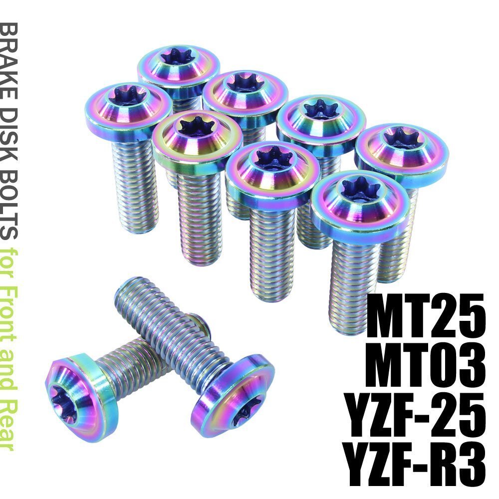 メール便OK!チタンボルト ヤマハ MT25 MT03 YZF-25 YZF-R3専用 ブレーキディスクボルト 前後セット フロント リア 10本セット M8×25拍卖