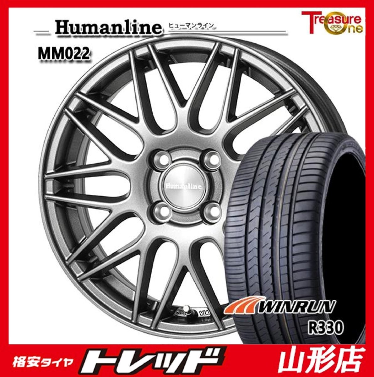 > 山形店 新品 夏タイヤホイール4本セット Humanline MM-022 15インチ 4.5j 4H100 +45 DG WINRUN R330 165/55R15 2025年製 軽自動車