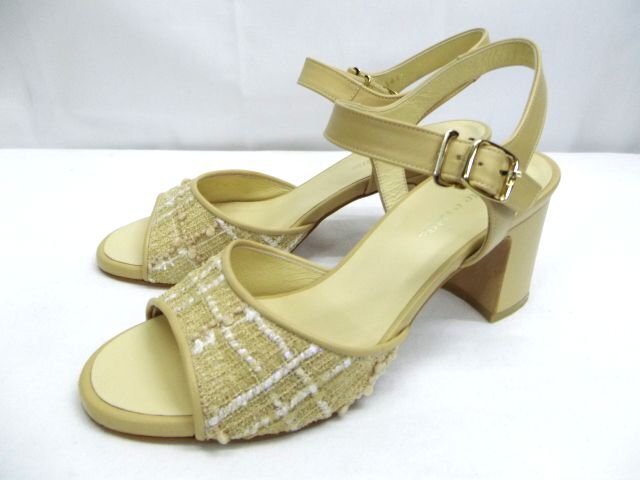 > 美品★Odette e Odile◎オデットエオディール/ツイード/レザー/サンダル/ヒール/54453/ベージュ/日本製/23.1/2