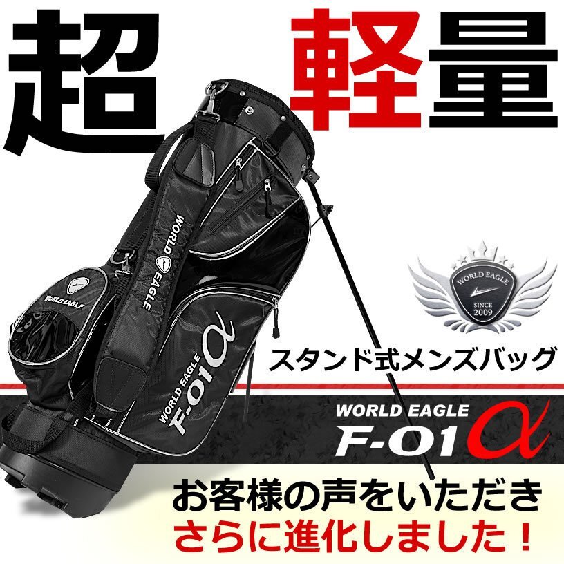 - ワールドイーグルF-01αメンズ スタンド付き ゴルフバッグ ブラック[34268]
