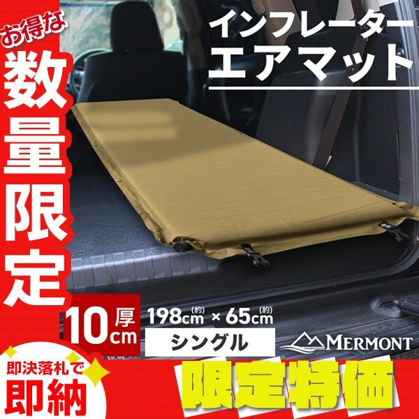 > 【限定セール】インフレーターマット 自動膨張式 エアマット 厚さ10cm スリーピングマット 車中泊 キャンプ アウトドア mermont コヨーテ