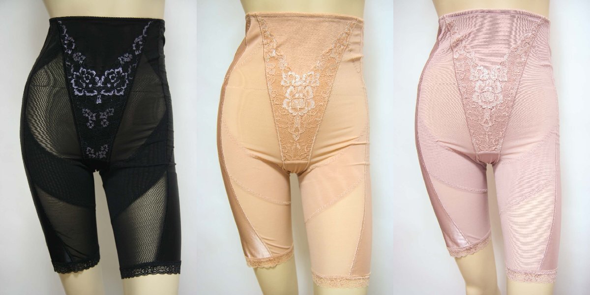 > 送料無料◆超お得3色組◆お腹押引き締め◆パワーネット◆メッシュ素材◆高級ハイウエスト&ロングガードル(3L/ブラック&ベージュ&ピンク)