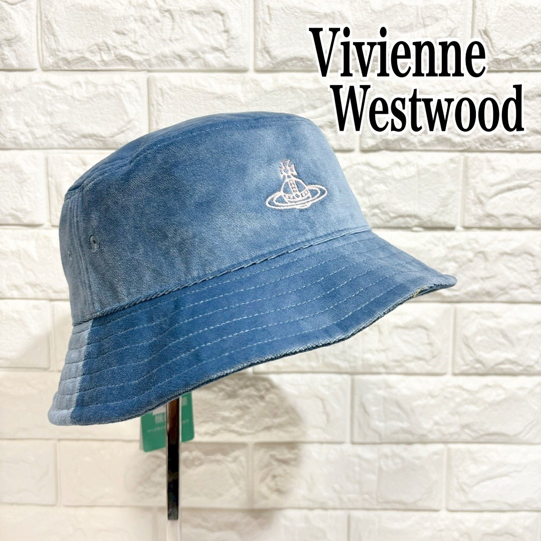 > ヴィヴィアン ウエストウッド バケット ハット ベロア オーブ 未使用 タグ付き ブルー M-S 調整可 光沢 バケハ 帽子 Vivienne Westwood