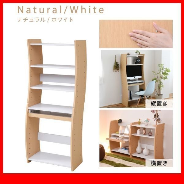 - 机★新品/4WAYパソコンデスク 学習机/ハイ 椅子仕様 ロー 座卓 縦置き 横置き/可動棚 幅60cm 省スペース スリム/ホワイト×ナチュラル/a3