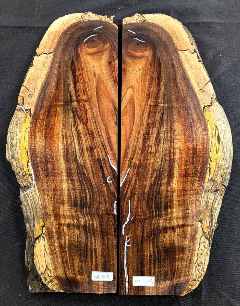 - 【ハワイアンコア・2本セット】◆KOA-346◆2A+グレードカーリー杢ブックマッチ◆送無◆ハワイアンコア◆ハワイ島直送◆ Hawaiian Koa #1#2