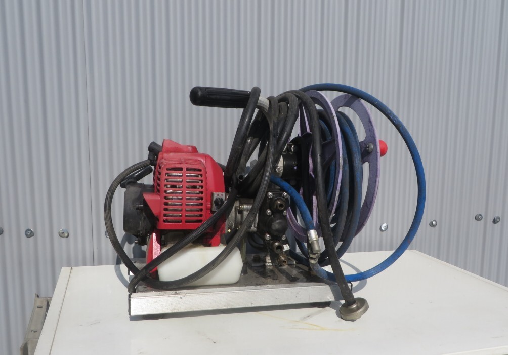 - X-762■2サイクルエンジンセット動噴 マジックスタート GS51EMR/本体ホース(青)約9.6m+給水ホース約2.5m×2 中古 動作品