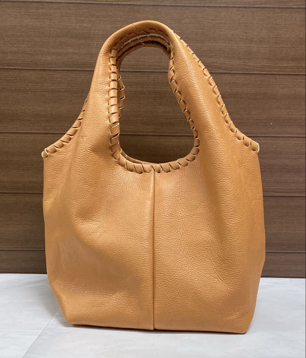 - 未使用 ♪ genten ゲンテン ♪ レザー トートバッグ ハンドバッグ 編み込み 無地 ブラウン系 キャメル 本革