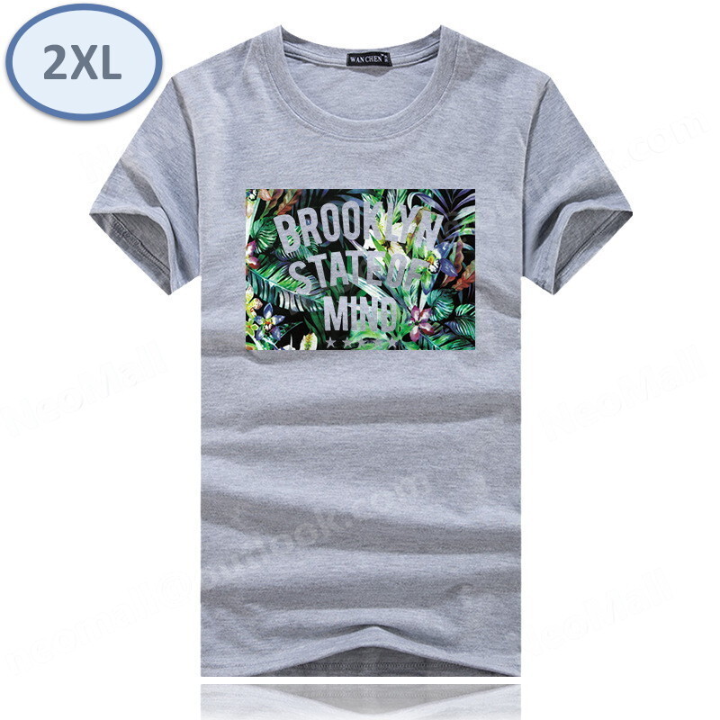 > 夏にピッタリ ☆ 丸首 半袖 Tシャツ【074】 グレー 2XLサイズ トップス シャツ シンプル イラスト プリント 春夏