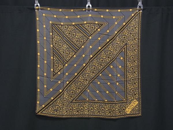- ■美品■ LANVIN ランバン シルク100% 総柄 スカーフ ストール レディース グレー系×マルチカラー DK7310