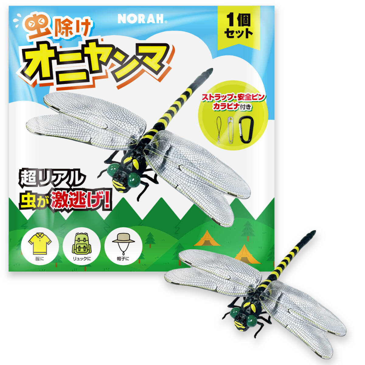 - 虫除け オニヤンマ まるで本物そっくり 虫激逃げ 1個セット ストラップ・カラビナ・安全ピン付き 蜂よけ