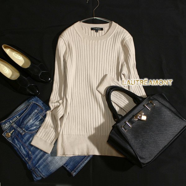 - 美品 LAUTREAMONT ロートレアモン 綺麗め細身 リブストレッチ ニット プルオーバー 38号 M 春 秋 25C11