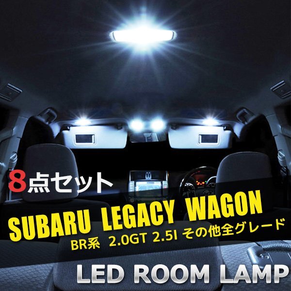 - スバル レガシィワゴン BR LED ルームランプ 8点セット 車種専用設計 室内灯 車内灯 照明 白 ホワイト 車 送料無料