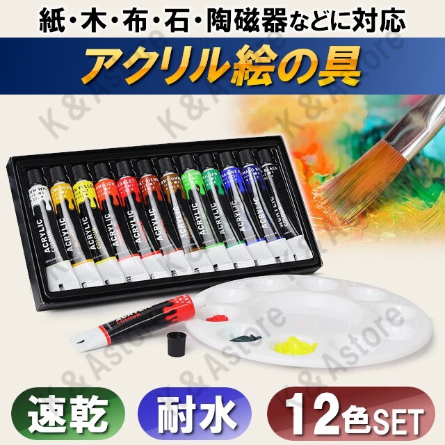 - アクリル絵の具 アクリル絵具 12色 セット アクリルガッシュ 黒 白 チューブ 速乾 防水 絵画 イラスト 塗り絵 クラフト 美術 画材 アート
