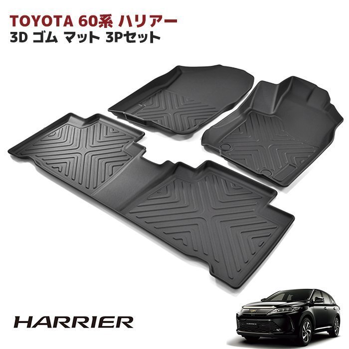 - 60系 ハリアー 3D フロアマット 防水 防汚 TPO素材 ブラック 3P 新品 車種専用設計 立体 トヨタ ZSU60 ZSU65W ASU60 ASU65W