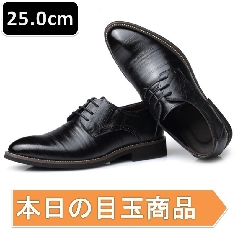 - 本日の目玉 ☆ メンズ ビジネス レザー シューズ ブラック サイズ 25.0cm 革靴 靴 カジュアル 屈曲性 通勤 軽量 【208】