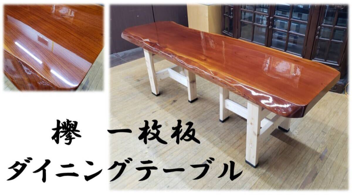 - ★最高級 欅 無垢材 希少 一枚板 ダイニングテーブル 高級感 レジン仕上げ 脚付き★引取り大歓迎