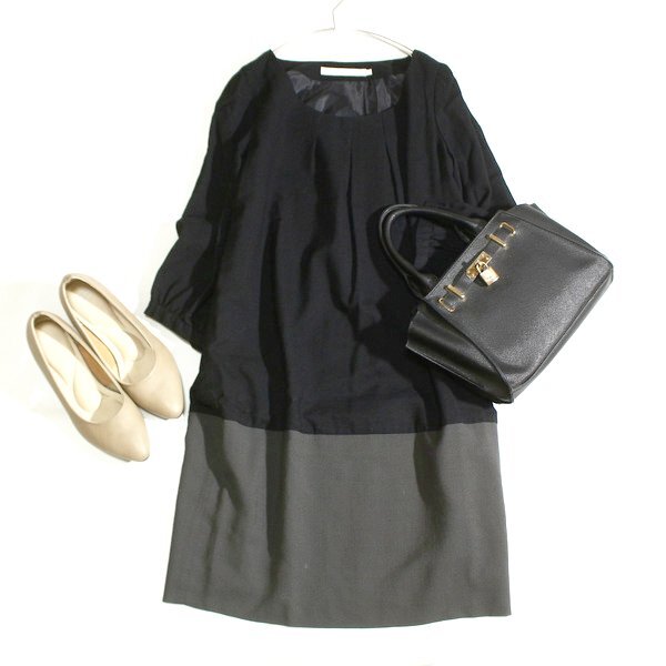 - 美品 The Way of Chic Ray BEAMS レイビームス 大人可愛い スーツ生地 バイカラー ウール ワンピース 1号 S 秋 冬 25C11