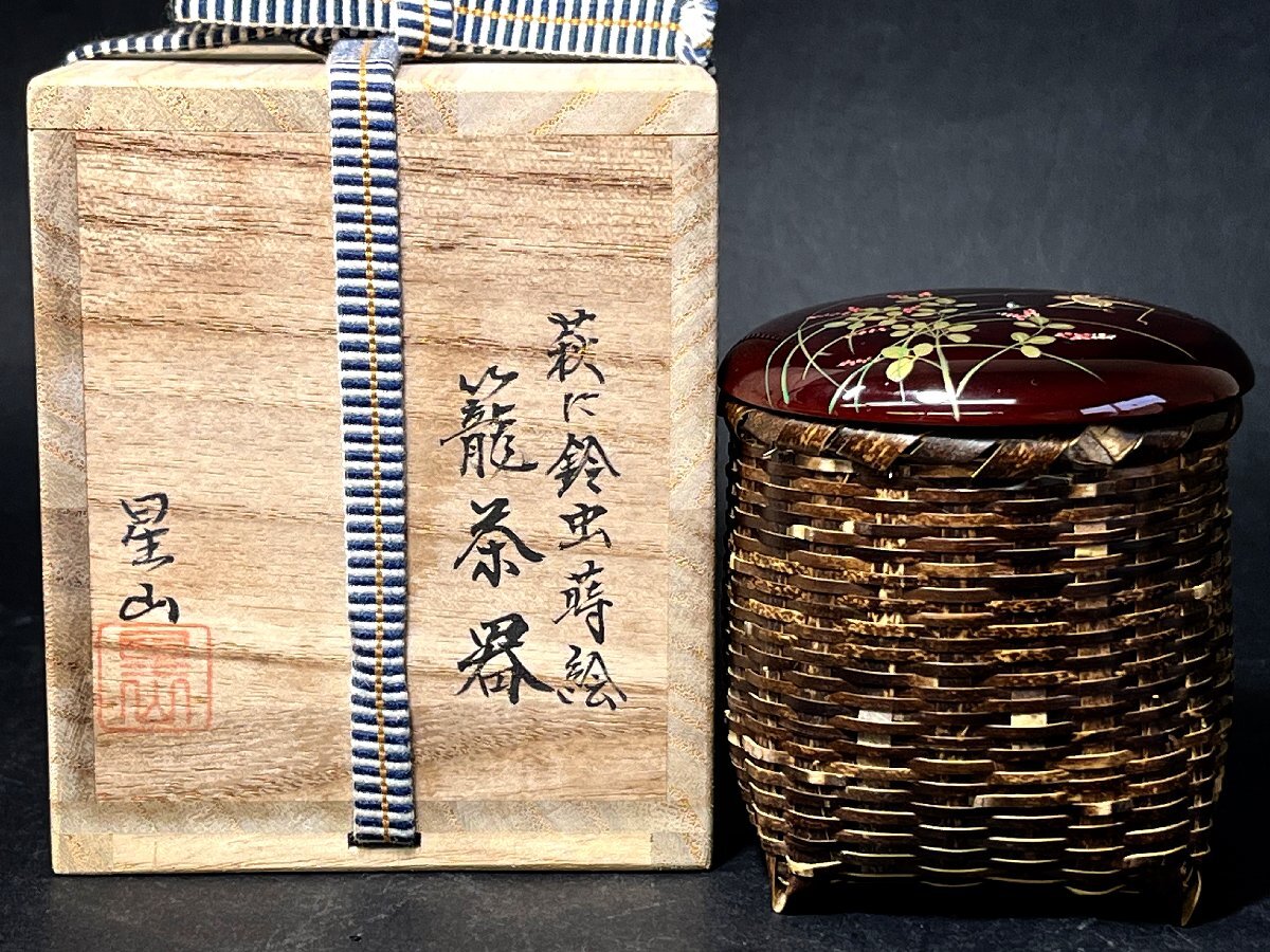 - 中林星山 萩に鈴虫 蒔絵 籠茶器 栞 共箱 外箱 茶道具