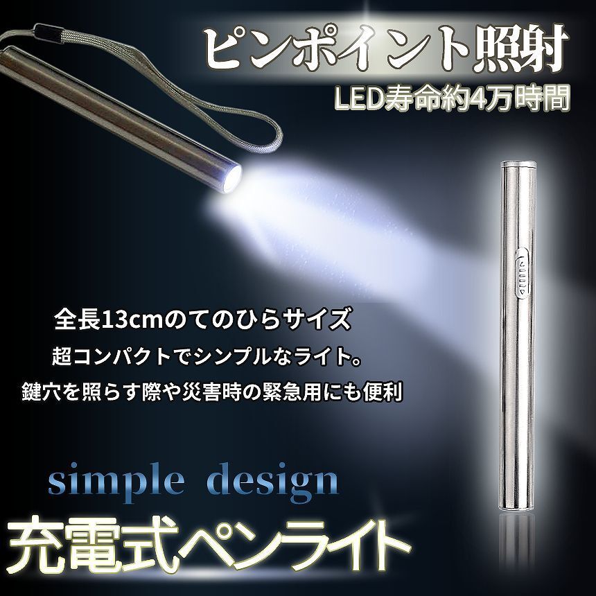- ペンライト コンパクト 作業灯 LED ペン ライト 小型 懐中電灯 USB 充電式 災害 防災 緊急 ツール PINPENRA