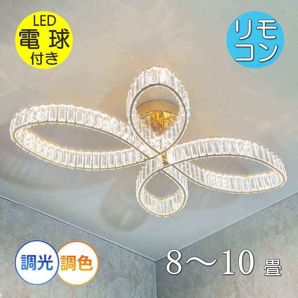 - 【LED付き】綺麗なデザイン LED内蔵 リモコン付 LED クリスタルシャンデリア ワイド94cm 調光&調色タイプ 送料無料 おしゃれ 安い 北欧