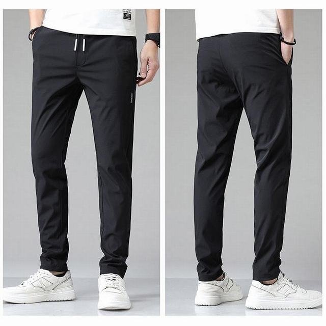 - 夏 薄手 トレンド メンズチノパンツ アイスシルク レギンスアイスシルク カジュアルパンツ ブラック L