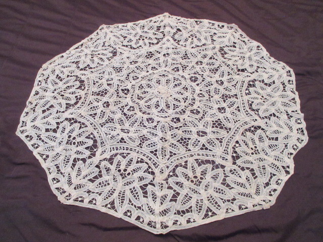 - ■アンティーク■丸テーブル用 テーブルクロス/テーブルセンター■約80cm×80cm■コードレース■