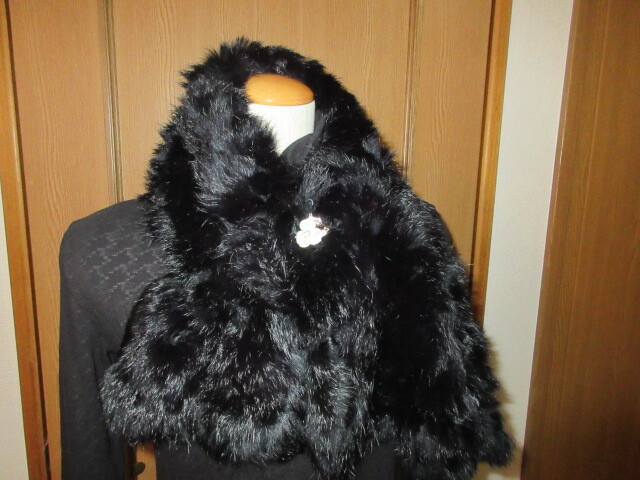 > ■ブランド【JAYRO】ミンク?本物ファーがネットに織り込まれたストール/スヌード】■天然白蝶貝のお花ブローチ付き【VB】刻印入り!