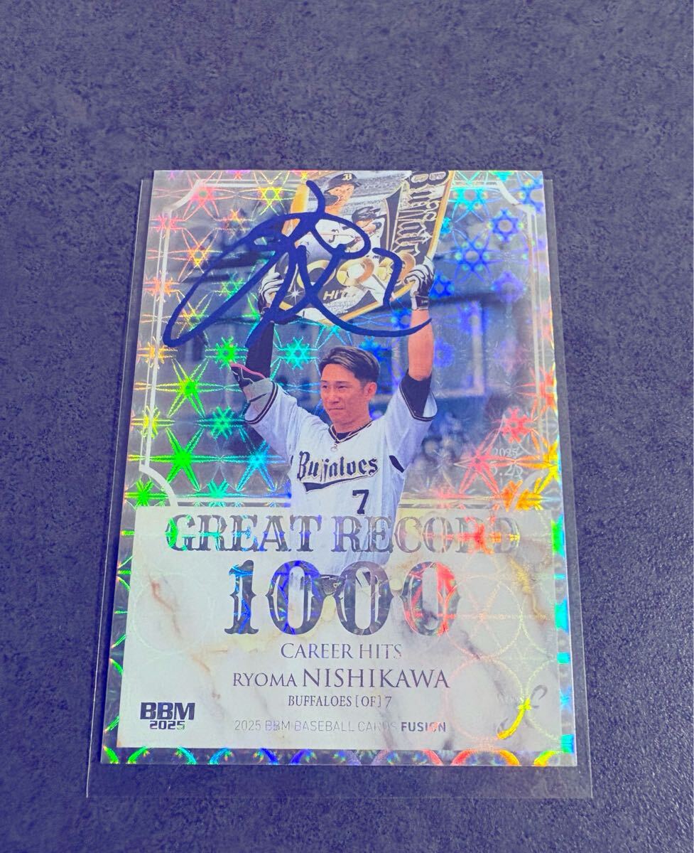 > 西川龍馬 BBM FUSION 2025 75枚限定 GREAT RECORD ホロブルー箔サイン オリックスバファローズ