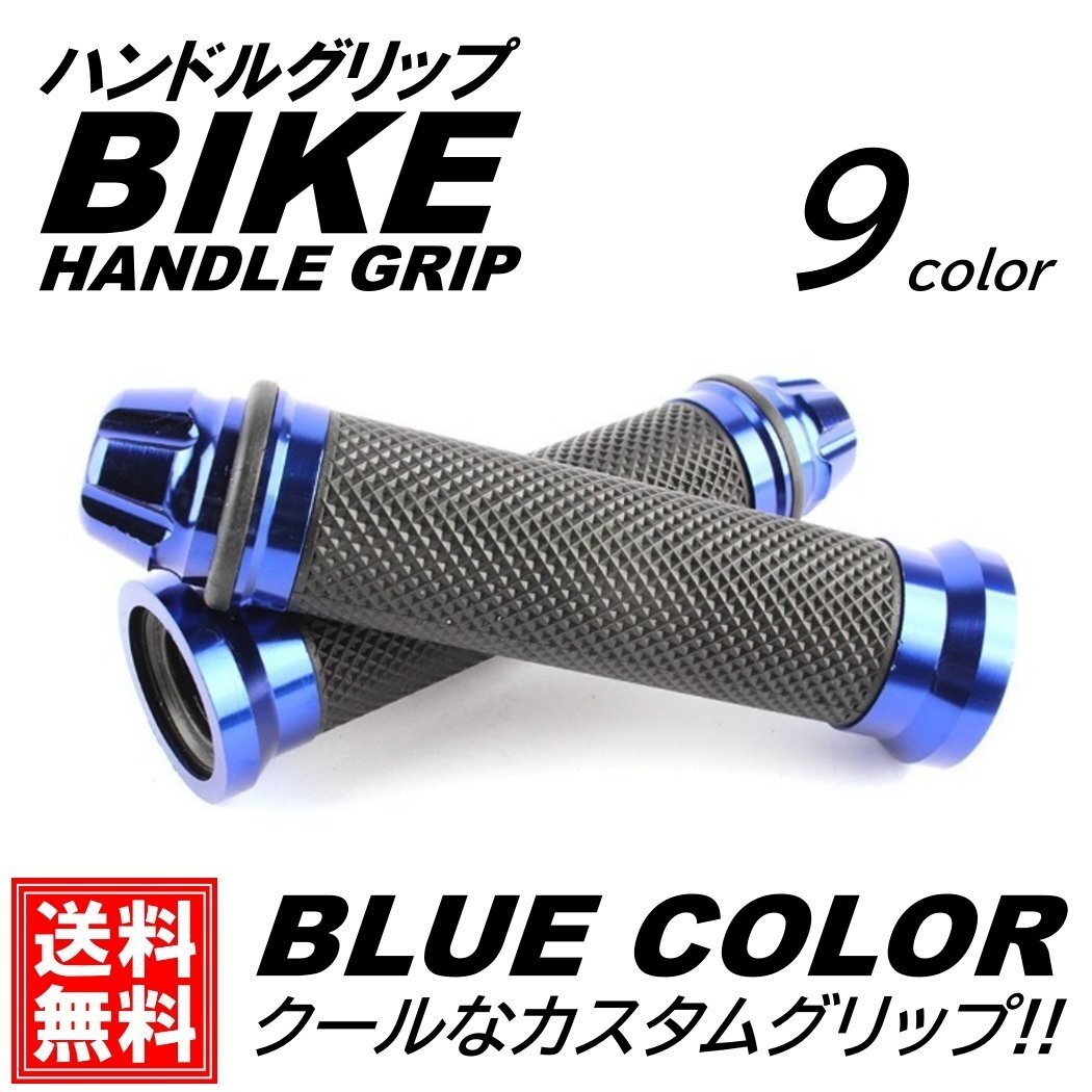 - ブルー 2本 バイク グリップ ハンドル 原付 バイクグリップ ハンドルグリップ カスタムグリップ アルミ 汎用 左右 アルミ グリップ