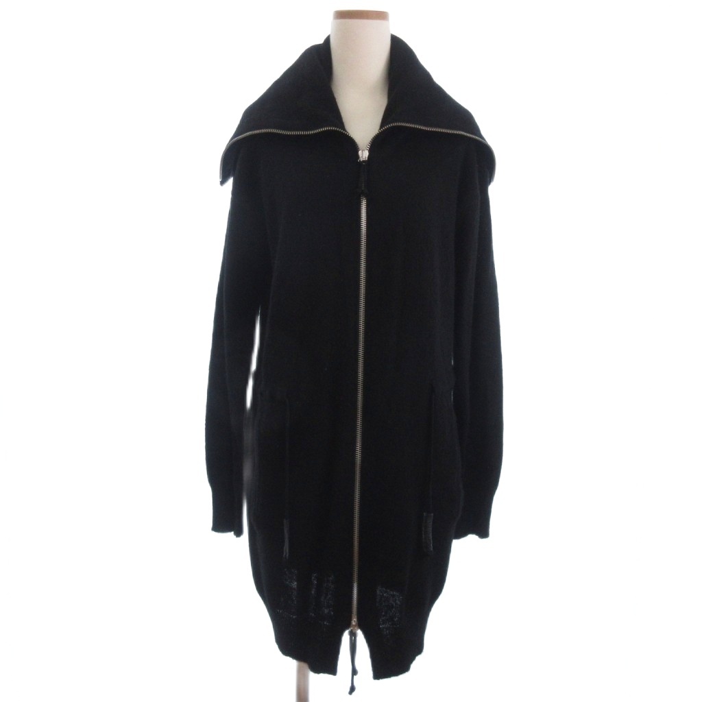 > エンポリオアルマーニ EMPORIO ARMANI ニット ロング パーカー ジップアップ 黒 ブラック 50 ■ECT レディース