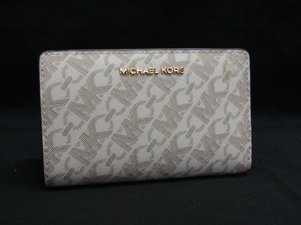 - 1円 ■新品同様■ MICHAEL KORS マイケルコース エンパイアPVC 二つ折り 財布 ウォレット レディース アイボリー系 GA6305