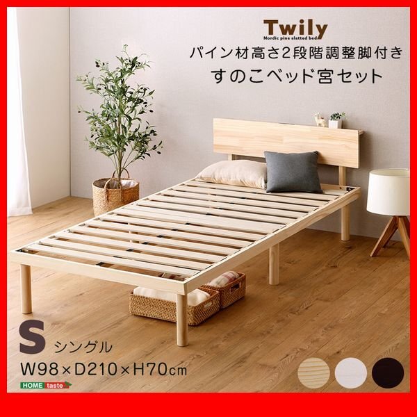 - ベッド★新品/宮付き パイン材高さ2段階調整脚付きすのこベッド シングル/通気性 耐久性 頑丈 低ホルムアルデヒド/茶 ナチュラル 白/zz