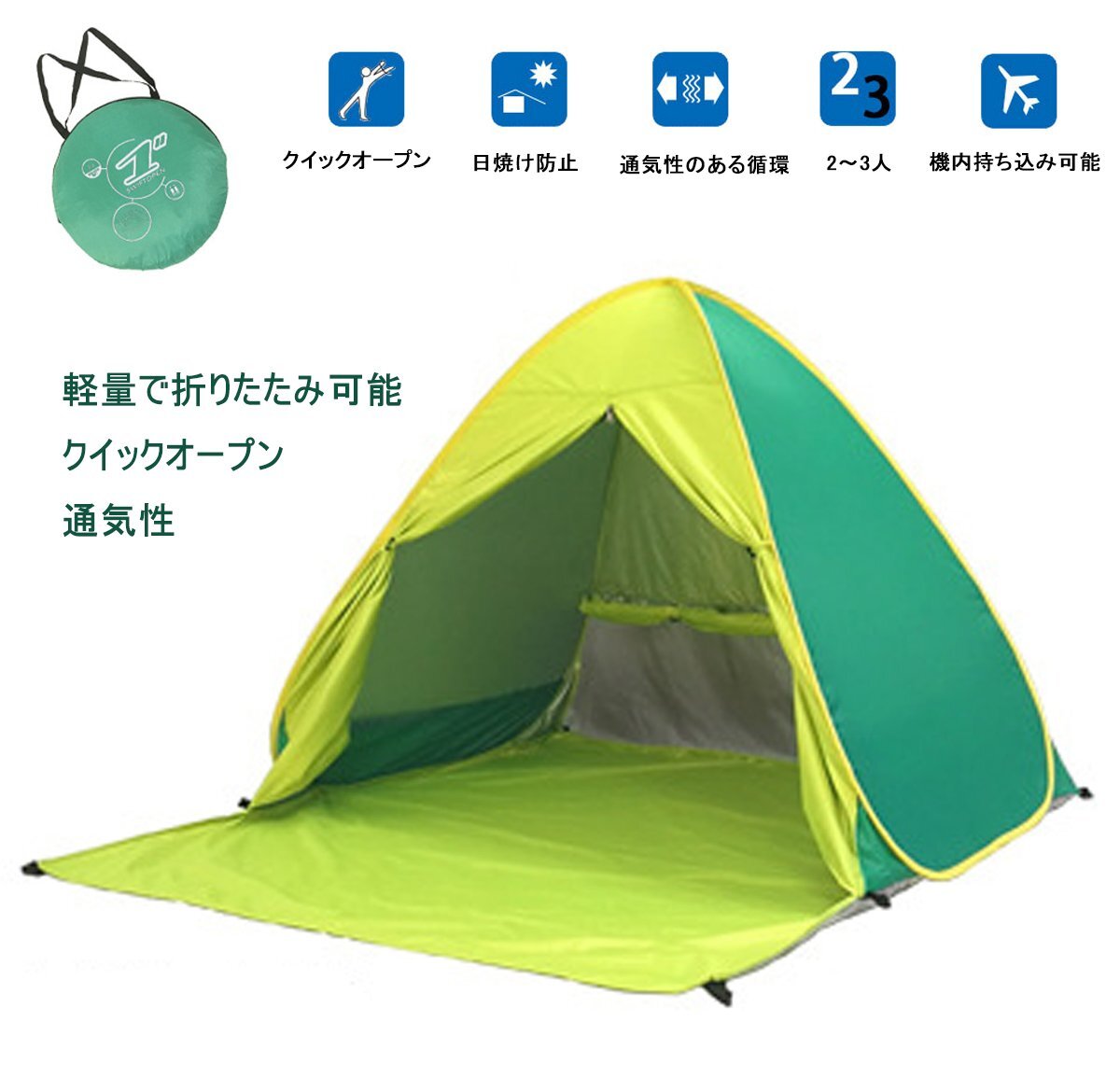 > ポップアップテント テント ワンタッチ 簡易 超軽量 通気 99%UVカット キャンプ 海 アウトドア 防災 収納袋付き 2~3人用 hw819