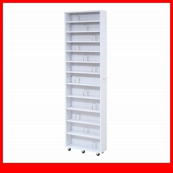 > 隙間家具★1cmピッチ大容量隙間ラック 幅16.5cm/本棚 CD DVD 多目的収納/ブックスタンド キャスター 転倒防止チェーン付き/ホワイト/a4