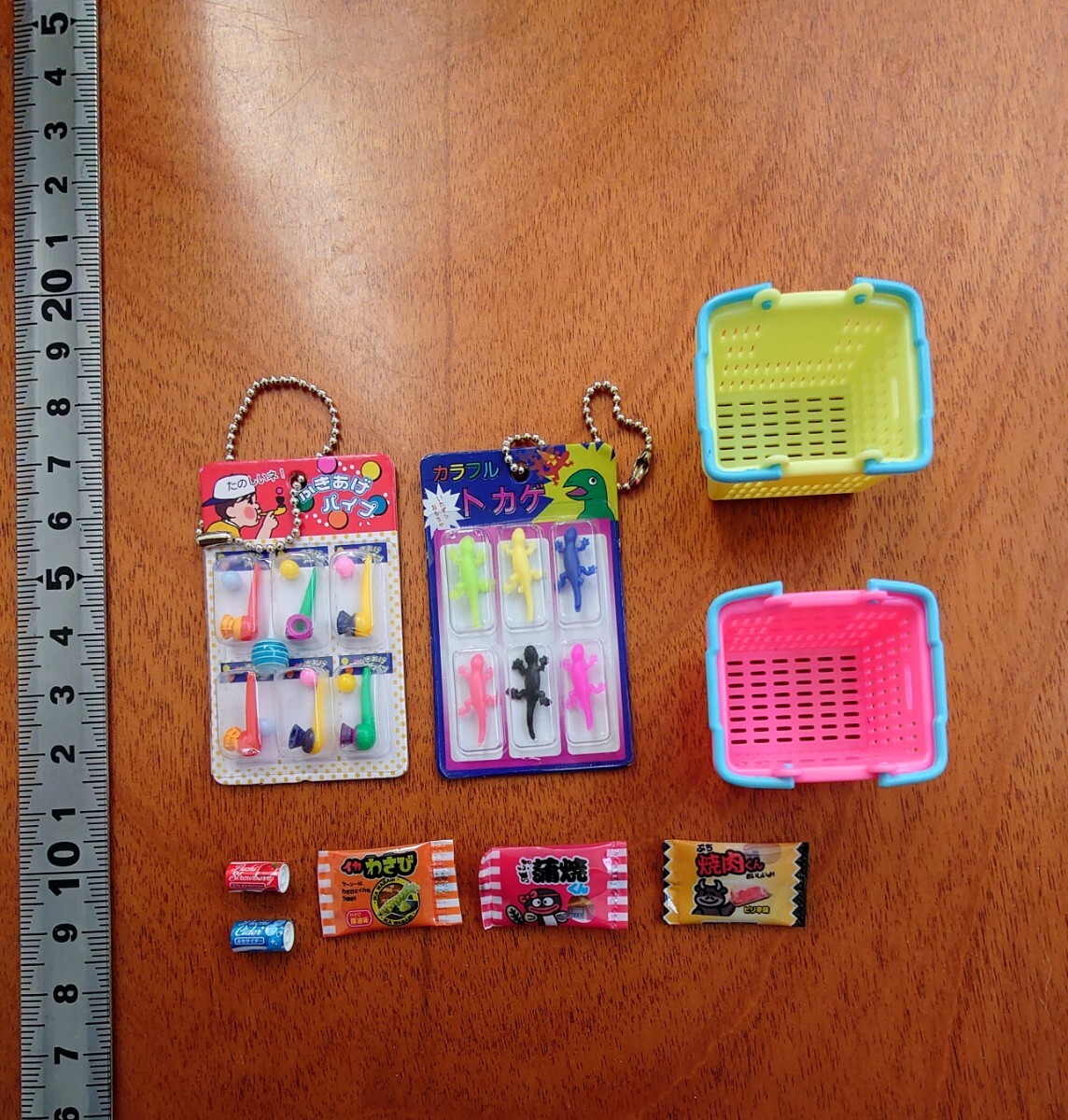 - リーメント 昔なつかし街角の駄菓子屋さん セット イカわさび 焼肉くん 蒲焼くん カゴ サイダー ストロベリー ぷちサンプル 駄菓子 ガチャ