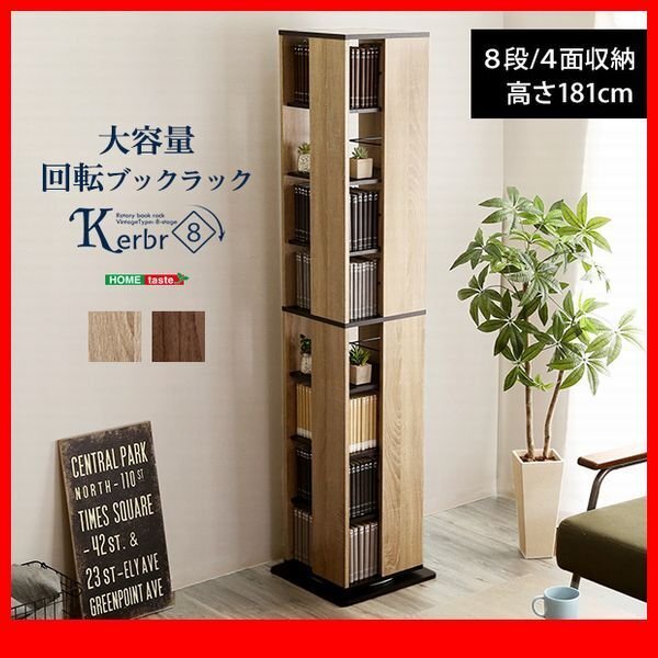 - 本棚★回転ブックラック 8段/コンパクト 省スペース 39x39cm/大容量 収納 本 320冊 DVD 320枚 CD 448枚/シャビーオーク ウォールナット/zz