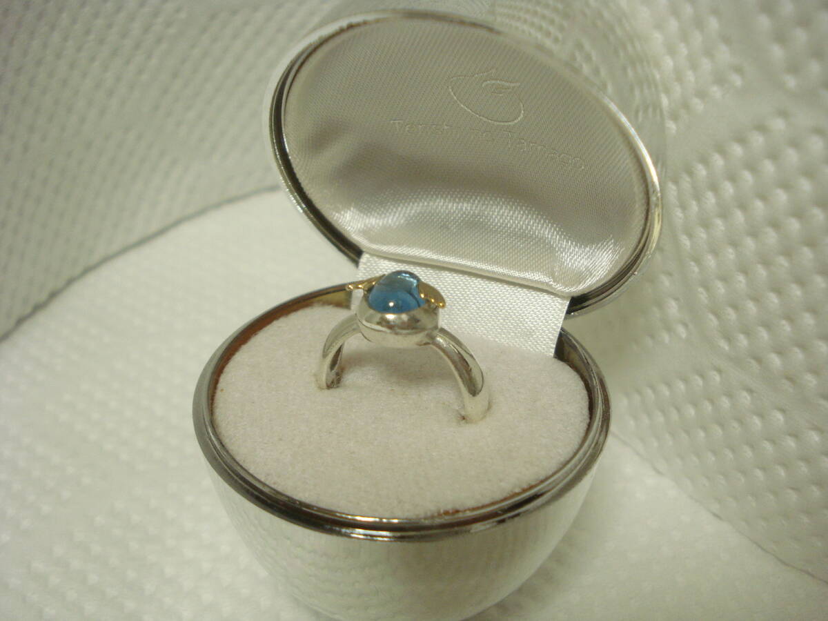 - ☆ 天使の卵☆ K18 シルバー リング☆ ブルー 石入りタマゴ 10号 指輪