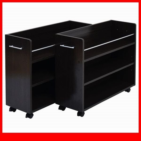 - 押入れ収納★新品/押入れ用ラック 2個セット/本棚 隙間家具 可動棚 キャスター付/リビング デスクラックにも/ダークブラウン/a1