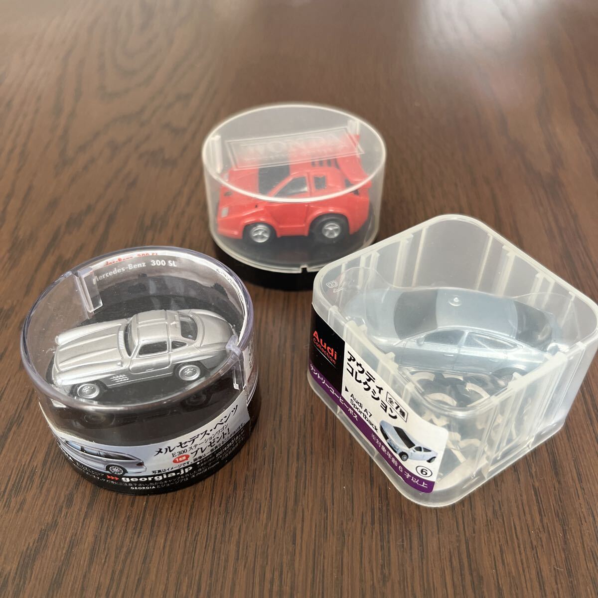 - GEORGIA メルセデス・ベンツ 300SL、サントリー アウディ A7 sportback、WONDA フェラーリ、FIRE シボレーインパラ、トミカ CX-5、プリウス