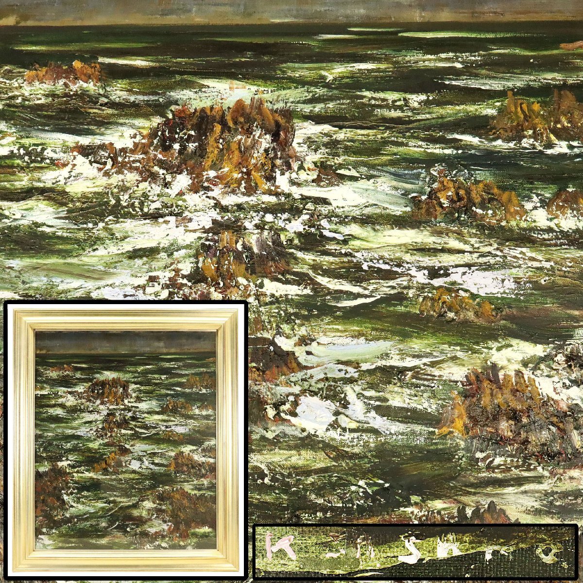 - 真作保証 笹野勝将 「日本海」 油絵 油彩 風景画 20号 絵画 書画 骨董品 美術品 431203lqN