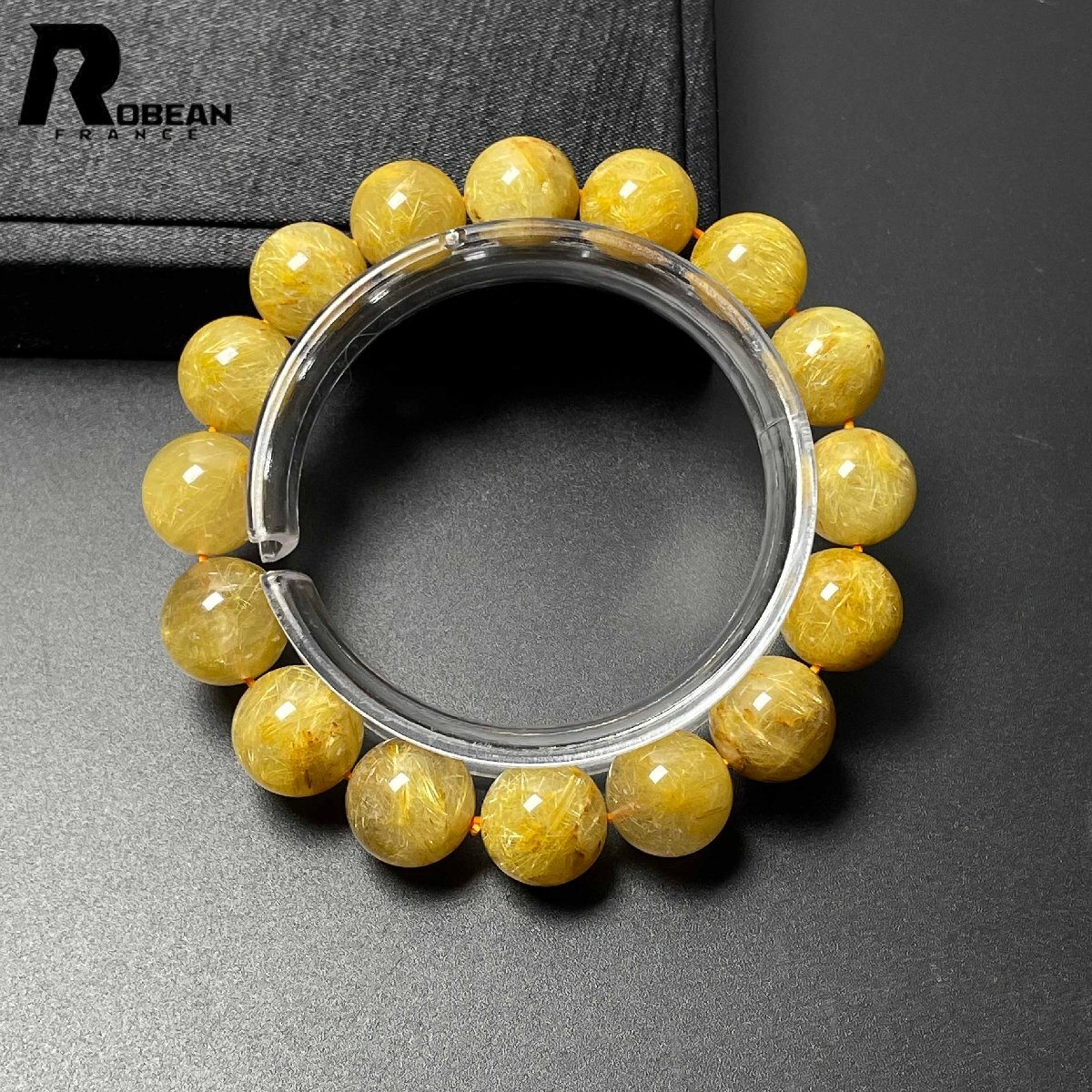 - 上級 EU製 定価20万円★ROBEAN・黄金タイチンルチル★ブレスレット パワーストーン 天然石 金運 お守り 12.9-13.7mm M0512217