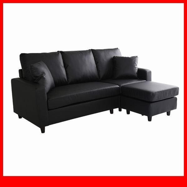 > ソファ★3人掛けカウチソファ/オットマン カウチ 脚を外してロースタイル 自由自在合成皮革 ポケットコイル クッション付き/PVCブラック/a5