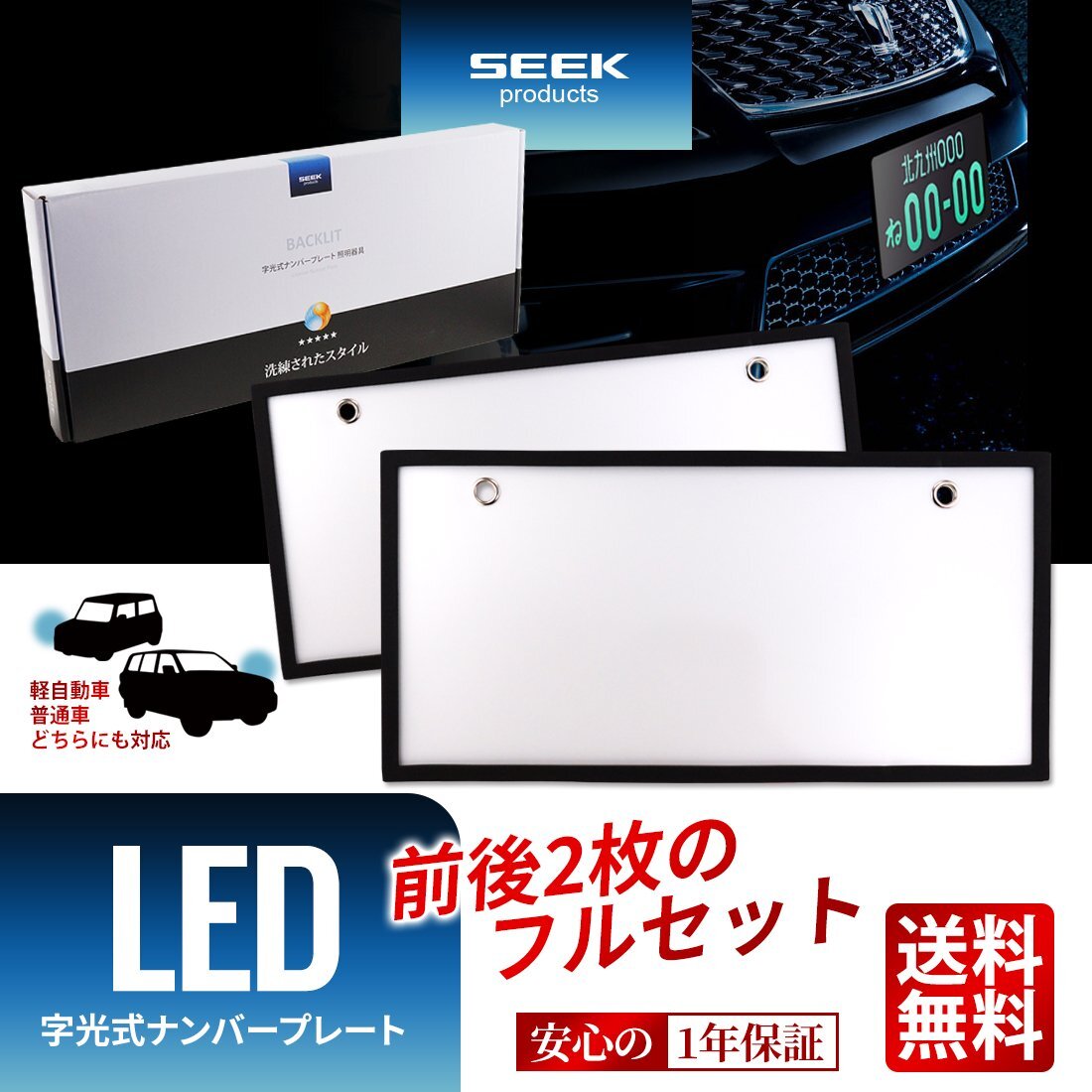 > 1年保証 LED 字光式 ナンバープレート SEEK Products 国内点灯検査 普通車/軽 全面発光 前後2枚セット 宅配便 送料無料