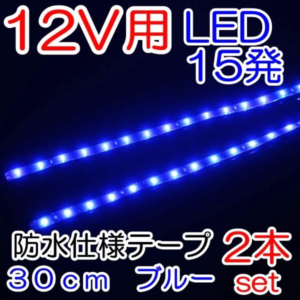 > ☆送料込 デイライトや室内に!防水仕様 15連 LED テープ 30cm 青 2本セット 定形外発送☆3
