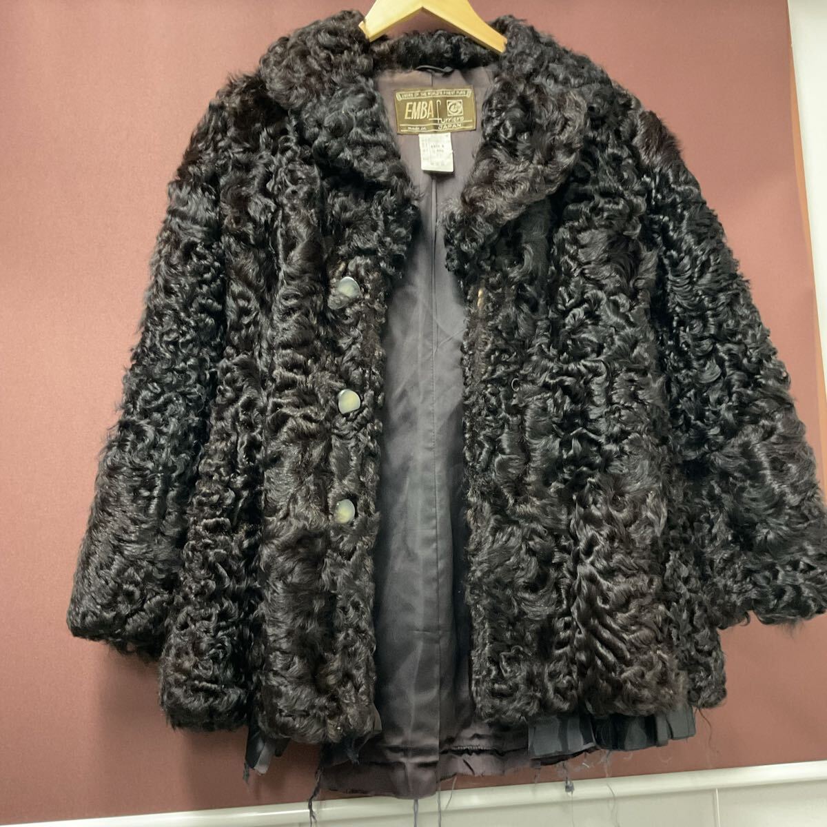 - 代MC105-100◆ EMBA エンバ ダークブラウン 毛皮 ファーコート サイズ9号 約:着丈69cm【ジャンク品】