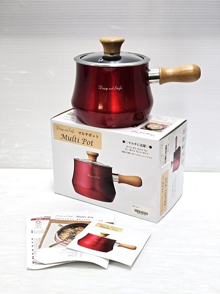 - 【中古未使用品】 日本洋食器 マルチポット ガラスふた 2.17L 1台で8通りの使い方 レッド ○YR-19376○