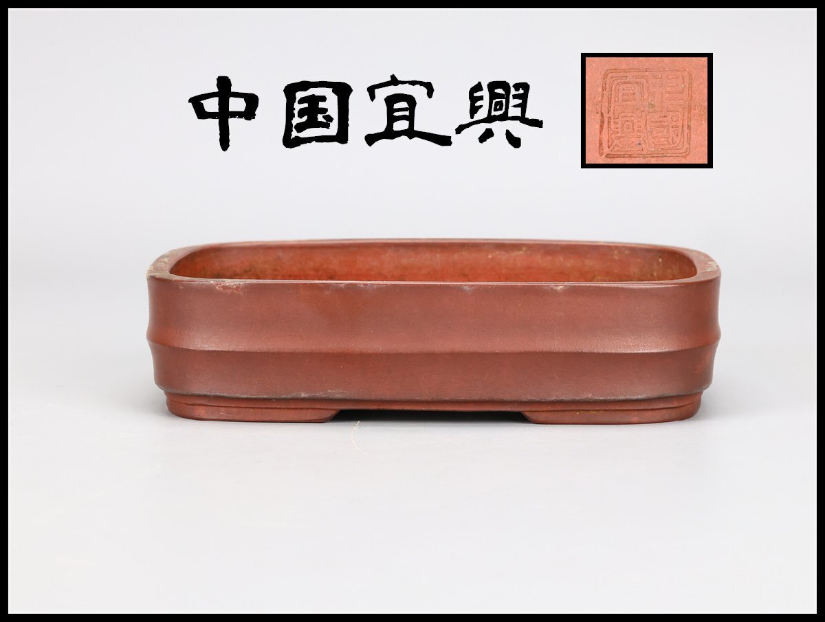 【吉】CO132 唐物 【中国宜興】 朱泥 紫砂 植木鉢 盆栽鉢/時代の汚れあり!拍卖