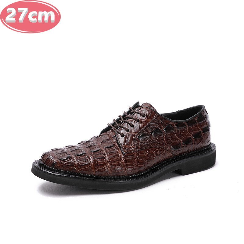- クロコダイルレザー ビジネスシューズ 最高級 ワニ革 クロコダイル 靴 メンズシューズ 革靴 ブラウン 27.0cm 【n786】