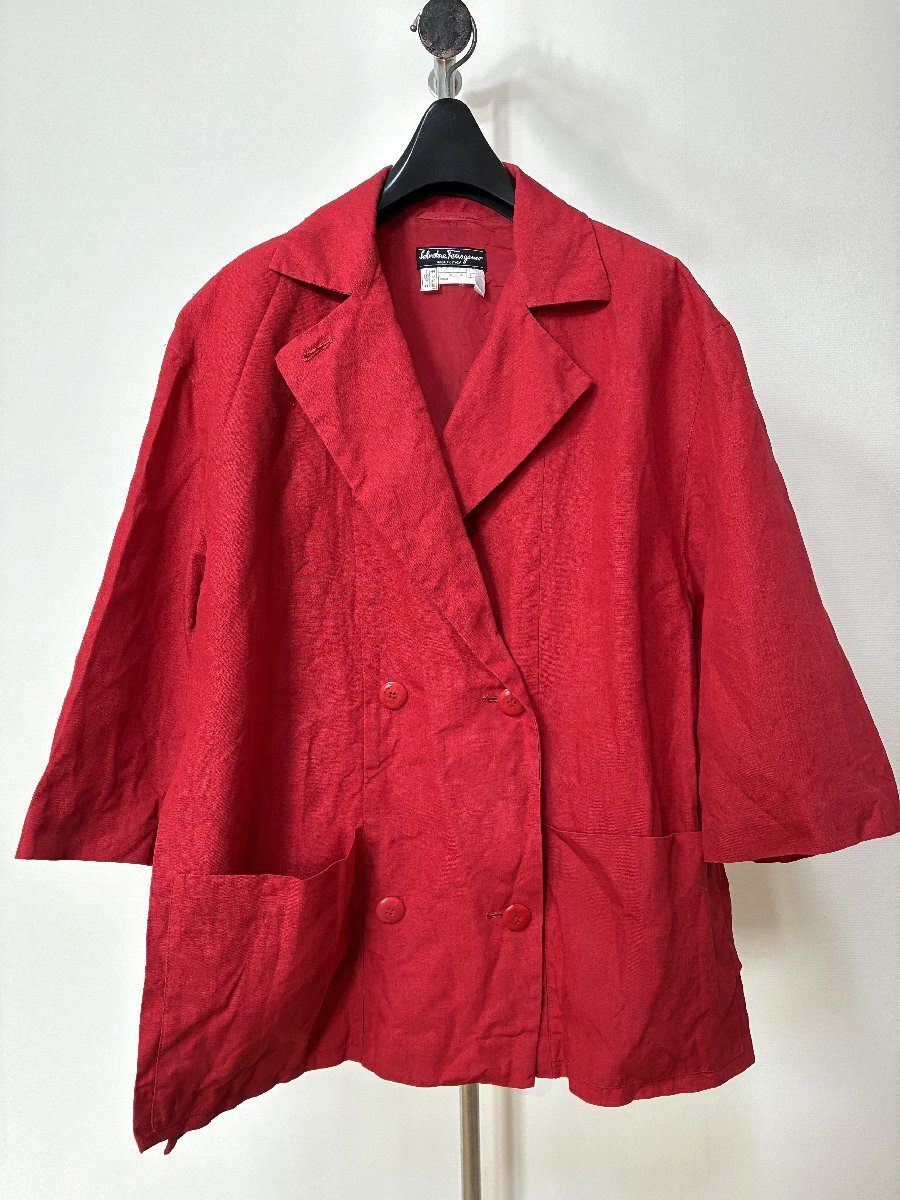 - Salvatore Ferragamo (サルヴァトーレ・フェラガモ) イタリア製 リネン 麻 レディース テーラードジャケット サイズI44