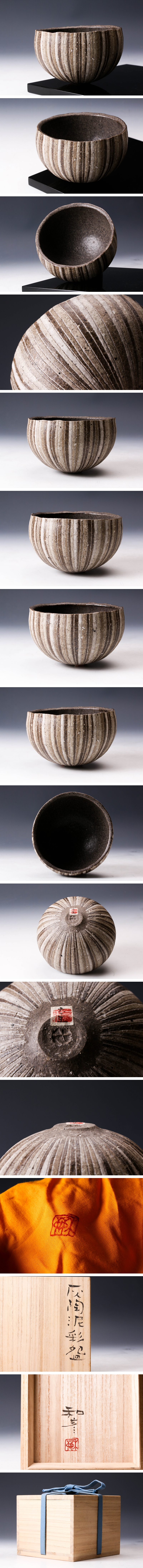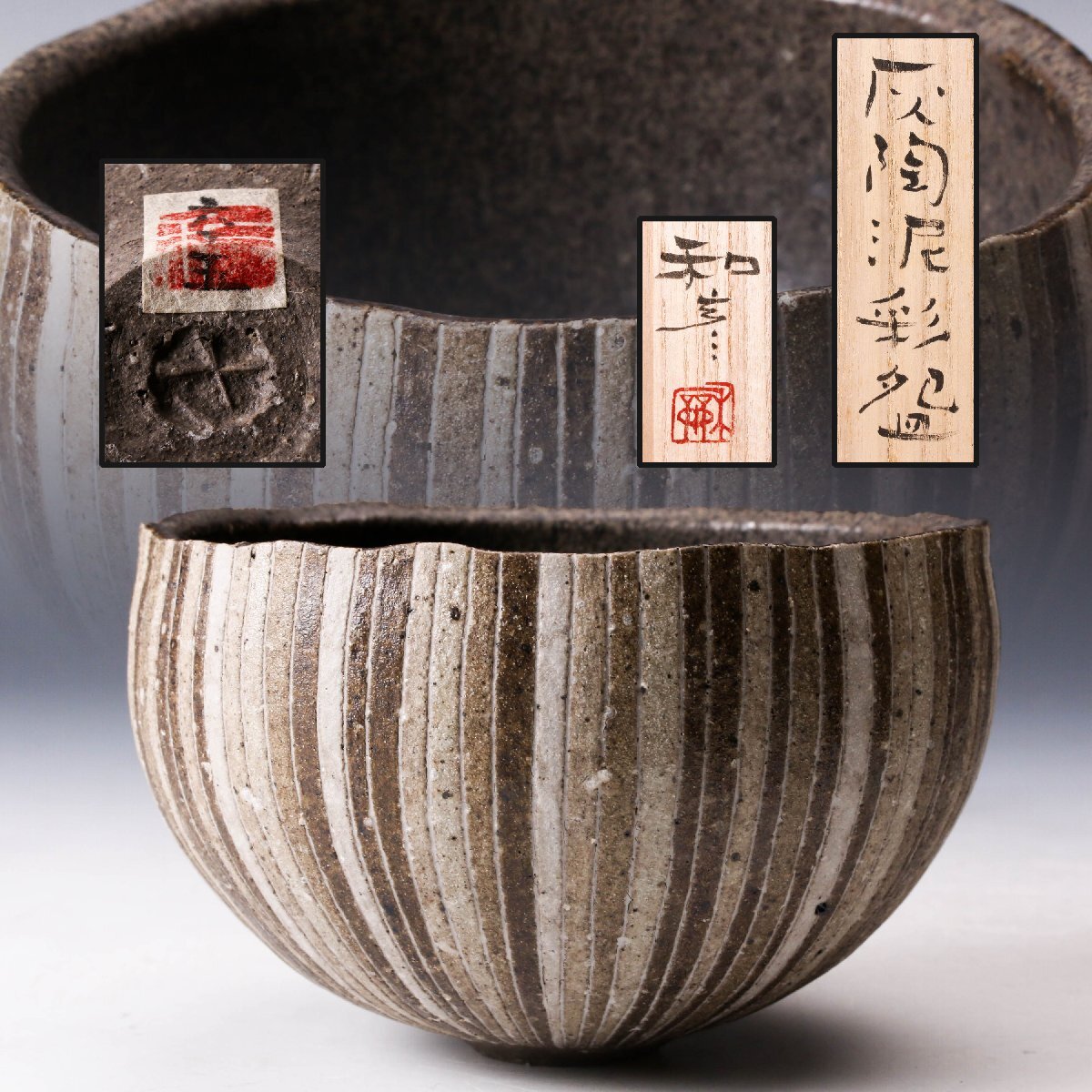 【佳香】佐藤和彦 灰陶泥彩碗 茶碗 共箱 共布 茶道具 本物保証